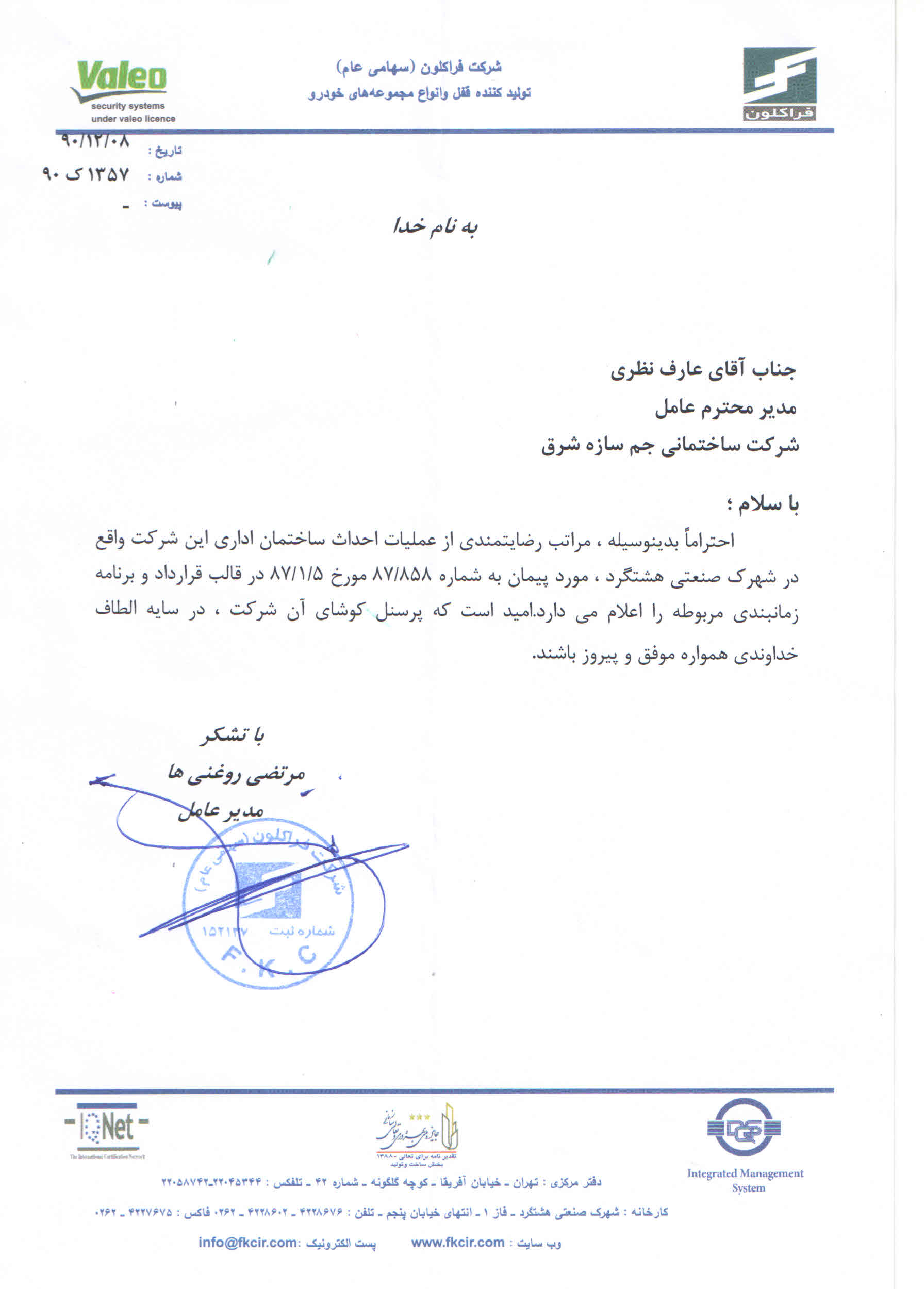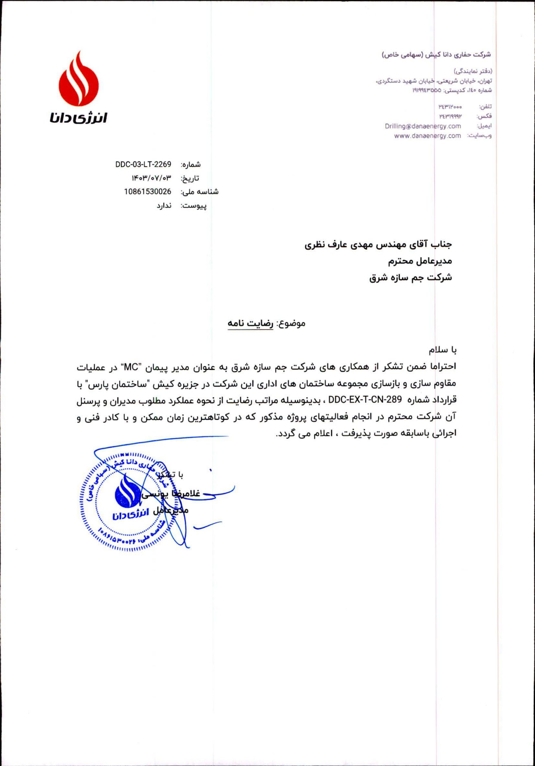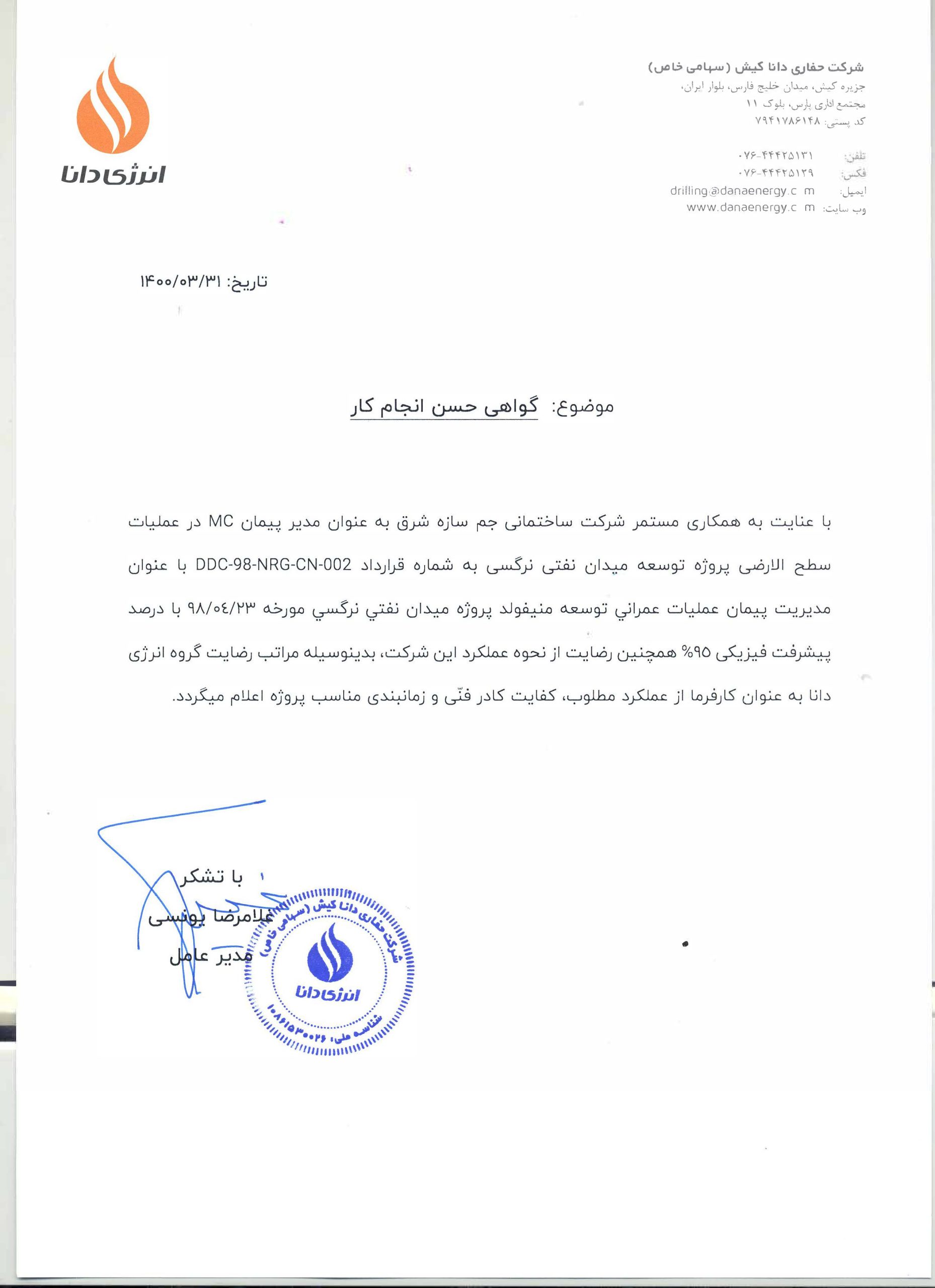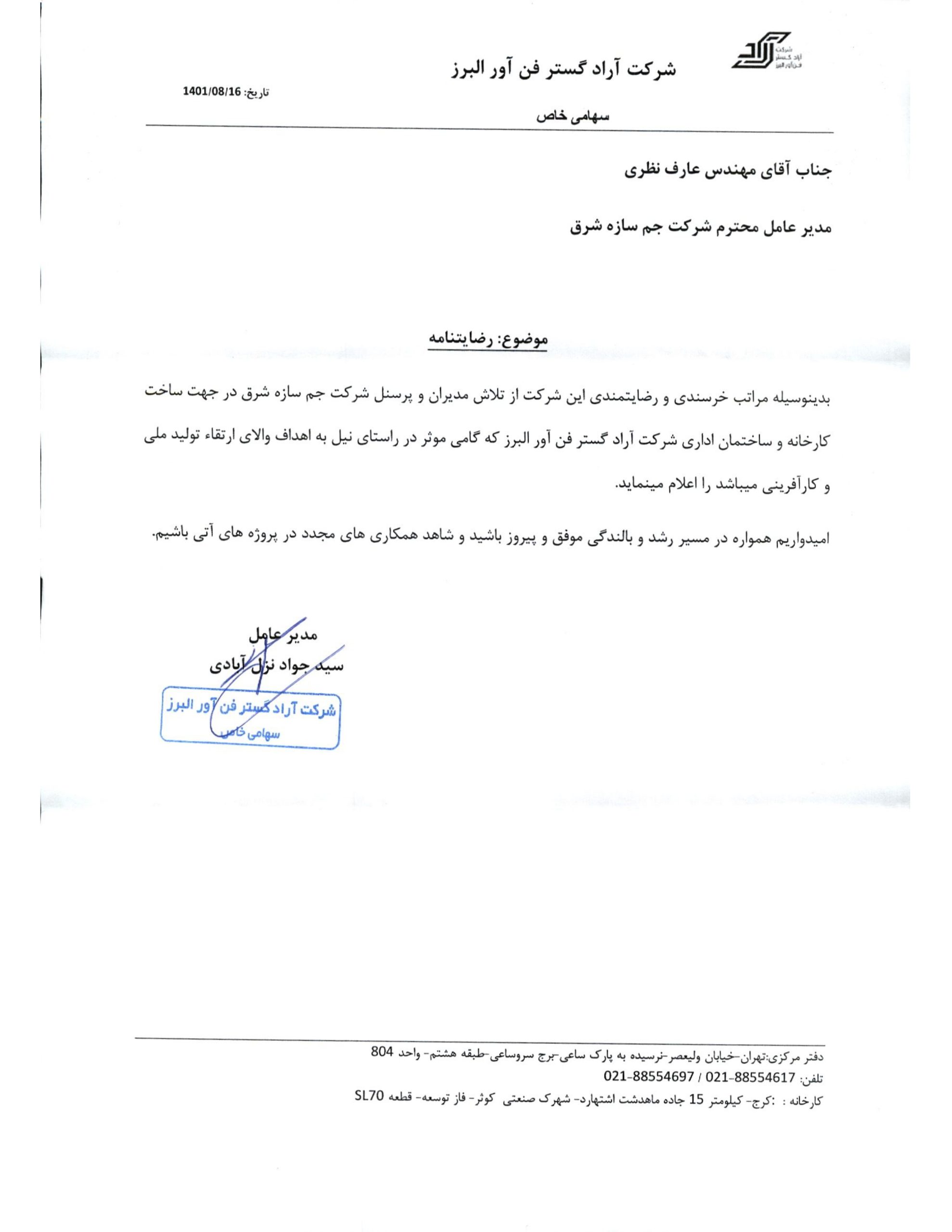 رضایتنامههای کارفرمایان